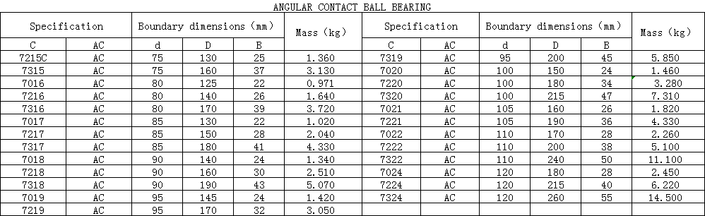 Angular contact ball bearings are able to support radial load and axial load . As single row angular contact ball bearings can only support axial load in single direction ,matched bearing mounting is often adopted to them as matched parts of bearings,preload for them is mote comvenient. Retainers are made of brass,synthetic resins or others subject to individual bearing features and application conditions.