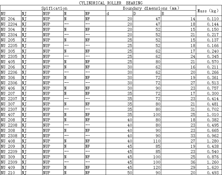 This type of bearings is separable .As their rollers linearly come into contact with inner ring and outer ring with less coefficient of friction ,these bearings have very good capacity of radial load,suitable for electric motors, automobiles,transmission shafts, gear shafts and so on. Double row cylindrical roller bearings are good at the spindles of machine tools.